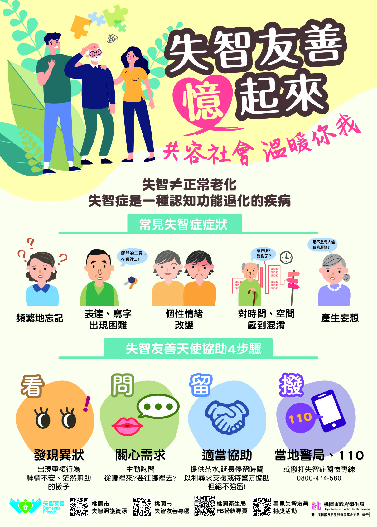 四、 | 相關活動資訊如附件,亦可至該局網站(https://dph.tycg.gov.tw/,首頁>業務資訊>健康促進服務>慢性病防治>113年看見失智友善-線上抽獎活動)查詢。 |