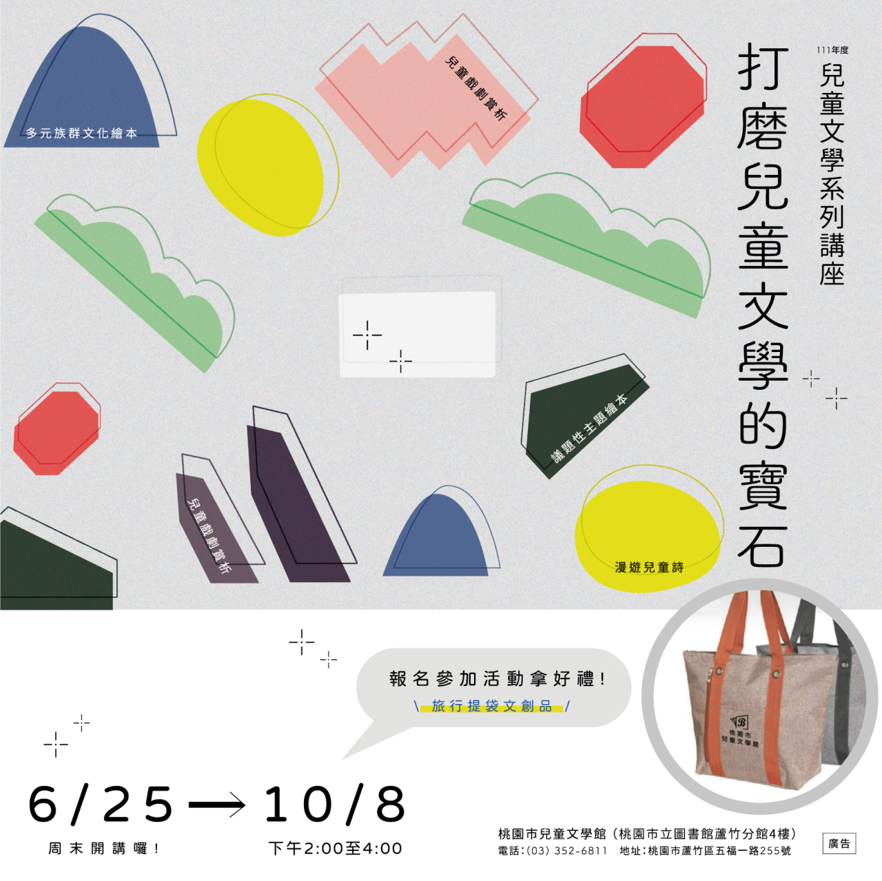 桃園市兒童文學館於111年6月25日至10月8日辦理「打磨兒童文學的寶石」系列講座共8場