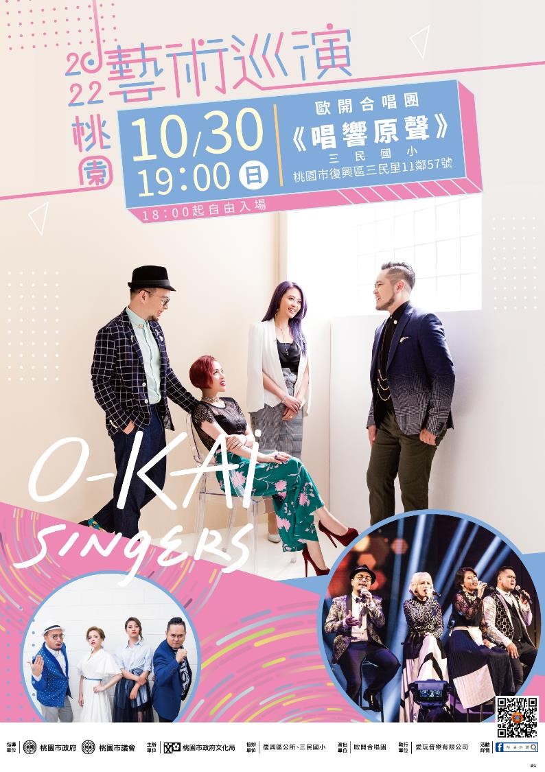 2022桃園藝術巡演-歐開合唱團《唱響原聲》,10月30日(日)晚間7時至8時於復興區三民國小演出,歡迎前來欣賞。
