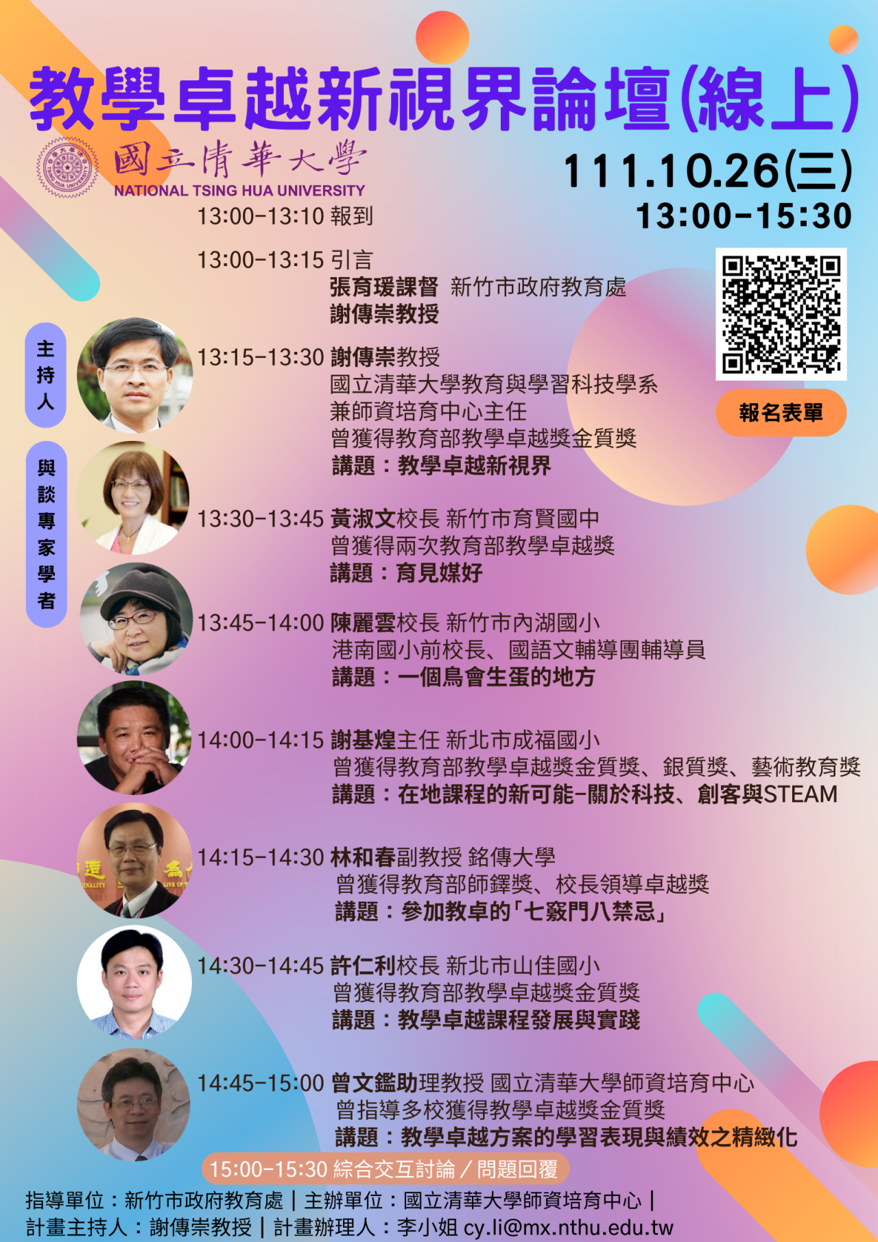 國立清華大學師資培育中心辦理「教學卓越新視界」線上論壇