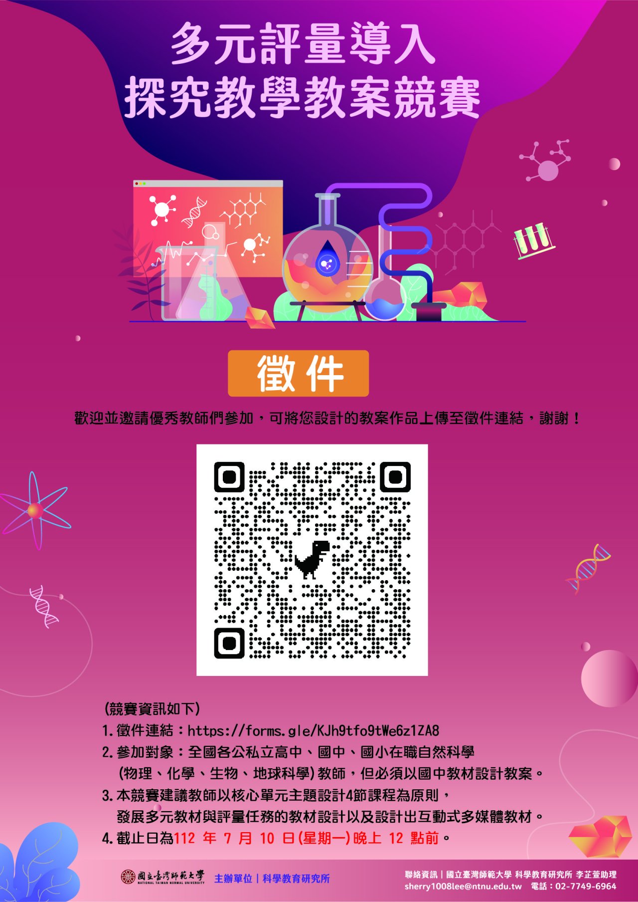 如有疑問請逕洽國立臺灣師範大學科學教育研究所李芷萱助理(電話:02-7749-6964/信箱:
