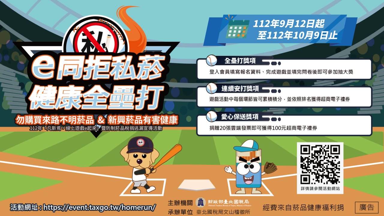 財政部臺北國稅局112年「凡斯焉,線上遊戲e起來」暨防制菸品稅捐逃漏之網路遊戲活動。