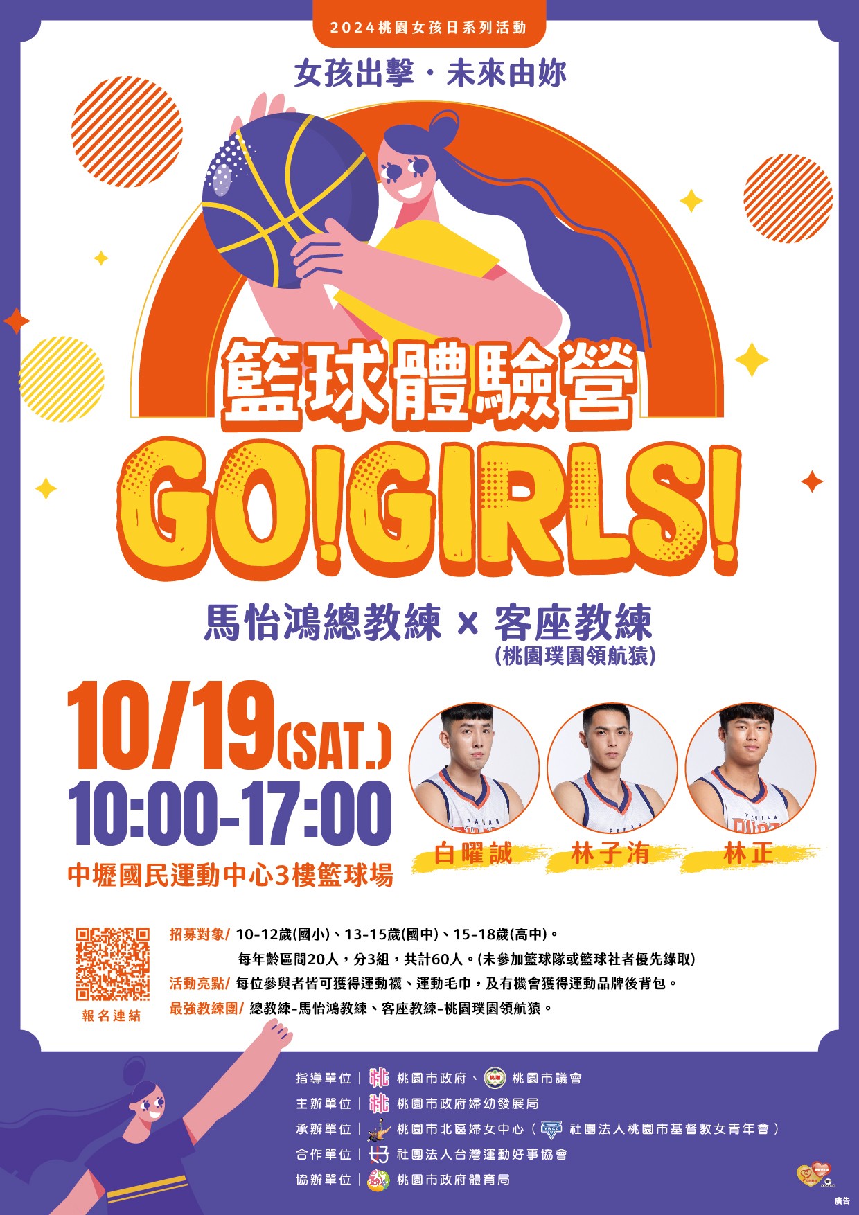 「2024桃園女孩日系列活動-籃球營」電子海報。