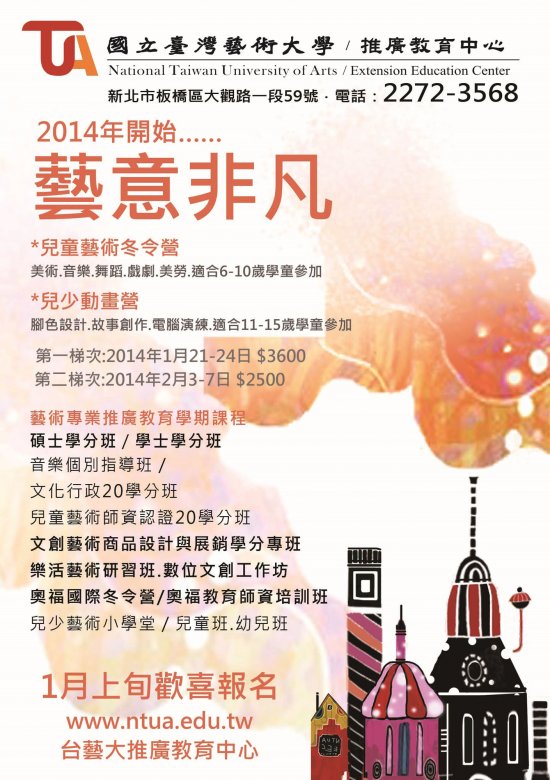 國立臺灣藝術大學102學年度第2學期推廣教育「樂活藝術研習班」活動。